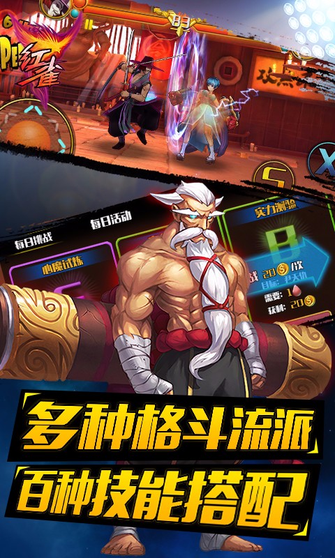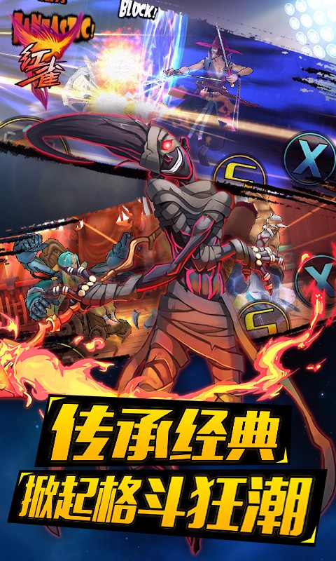 在玩家体验上,《红雀》进行了大胆创新。保留虚拟摇杆和按键,但放弃了街机游戏中摇杆“前后绕半圈+A”的撮招玩法,简化成虚拟摇杆前、后、下、空+A、S、X按键的操控方式,简单易上手,系统判定清楚、严谨,就能释放不同招式,又有扎实的打击感。玩家要做的是组合使用招式,打出漂亮的连击。